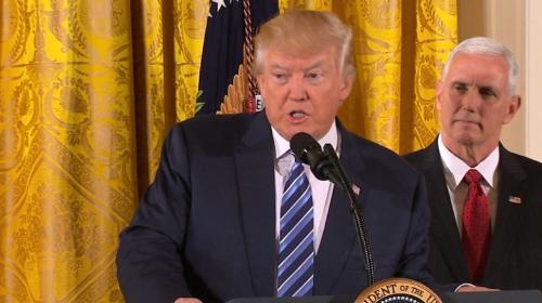 도널드 트럼프 미국 대통령이 백악관에서 NAFTA 재협상 관련해 브리핑을 하고 있다. 사진/CNN
