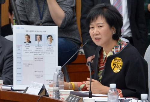 더불어민주당 손혜원 의원이 지난달 14일 오전 국회에서 열린 박근혜 정부의 최순실 등 민간인에 의한 국정농단 의혹 사건 진상규명을 위한 국정조사 특별위원회 제3차 청문회에 출석해 질의를 하고 있다. 사진/뉴시스