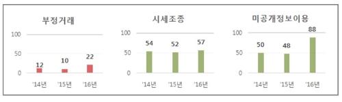 [뉴스토마토 김보선기자] 시세조종, 미공개정보이용, 부정거래 등 주요 불공정거래에 한번 노출된 종목 3곳 중 1곳은 반복적으로 불공정거래 대상이 된 것으로 나타났다.