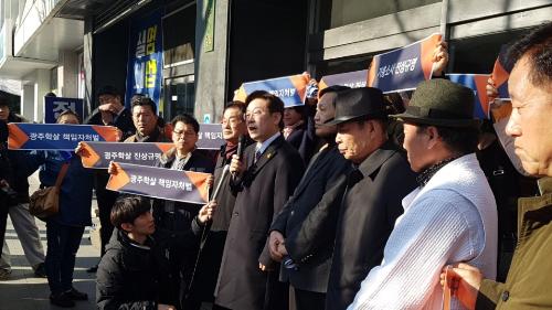 2월27일 오전 이재명 성남시장이 광주광역시 동구 금남로 전일빌딩을 찾아 5·18 광주민주화 운동 재조사에 대한 입장을 밝히고 있다. 사진/뉴스토마토