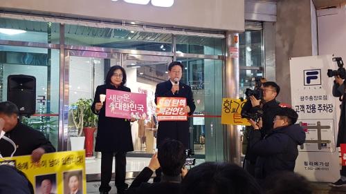 2월27일 저녁 이재명 성남시장이 광주광역시 금남로를 찾아 '황교안 대통령권한대행 퇴진과 특검연장'을 요구하는 집회에 참석했다. 사진/뉴스토마토