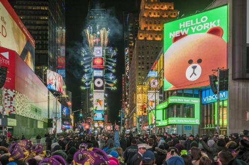 뉴욕 타임스퀘어에서 라인프렌즈의 대형 LED 옥외광고, 라인프렌즈는 오는 7월 뉴욕 타임스퀘어에 130평 규모의 정규 스토어를 연다. 사진/라인프렌즈