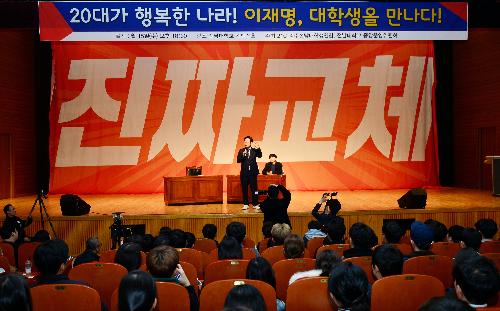 15일 저녁 더불어민주당 대선후보 경선에 나선 이재명 성남시장이 광주광역시 전남대학교를 찾아 강연했다. 사진/뉴시스
