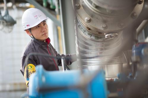 금호석유화학의 한 근로자가 설비를 점검하고 있다. 사진/금호석유화학