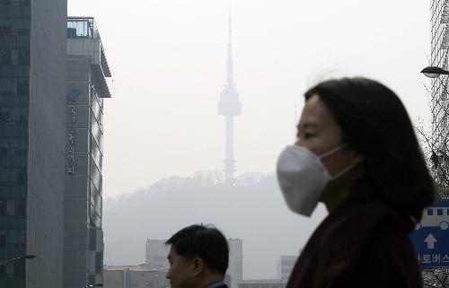서울 청계천에서 시민이 마스크를 쓴 채 발걸음을 재촉하고 있다. 사진/뉴시스