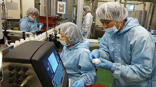 한국야쿠르트와 협력사 직원이 공장 설비라인을 둘러보는 모습. 사진/한국야쿠르트