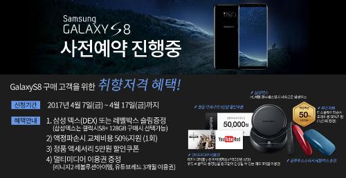 사전예약자는 갤럭시S8 출시일인 21일 이전인 18일부터 기기를 발송해 먼저 사용할 수 있도록 할 예정이다. 갤럭시S8 국내 예상 가격은 현재 공개되지 않았지만 64G 기준 갤럭시S8 90만 원대, 갤럭시S8+ 100만 원대에 출시할 예정이다.