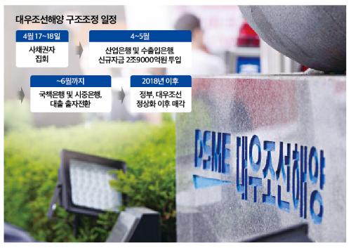 국민연금·우정사업본부·사학연금 등 주요 기관투자자들이 회사채 1조3500억원 중 50%를 출자전환하고, 나머지 50%는 만기를 3년 연장해 주면 대우조선은 큰 고비를 넘기게 된다.