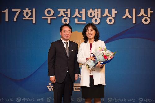 코오롱(002020)그룹 오운문화재단은 25일 서울 웨스틴조선호텔에서 제17회 우정선행상 시상식을 열고 이정아(49) 씨에게 대상을 수여했다.