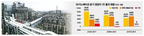 화학사업은 주요 공정이 지난해 4분기 정기보수를 마치고 본격 재가동에 들어가면서 에틸렌, 파라자일렌(PX) 등 주요제품의 마진이 강세를 보였다. 지난해 연간 영업이익의 40%에 육박하는 수익도 1분기에 올렸다. SK인천석유화학도 전년 동기 대비 8% 성장한 1300억원의 영업이익을 내며 힘을 보탰다. SK인천석유화학, 중국 중한석화, 울산 아로마틱스, 넥슬렌 등에 5조원가량을 투자하고 이들 사업이 본궤도에 오르면서 화학사업의 영업이익은 연간 3000억원대(2010년 기준)에서 1조원대로 급증했다.