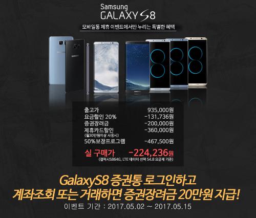 한편, 삼성전자 갤럭시S8를 시중가보다 싸게 구매할 수 있는 증권사 이벤트가 있어 화제가 되고 있다.
