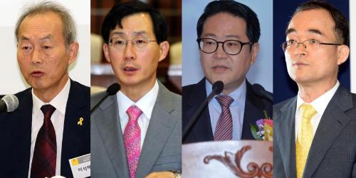 왼쪽부터 이석대·조용환 변호사, 김희관 법무연수원장·문무일 부산고검장. 사진/뉴시스