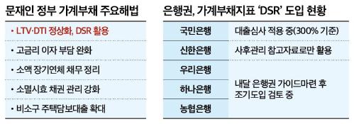 15일 금융권에 따르면 문 대통령이 가계부채 관리를 위해 DSR 활용을 제시한 가운데 주요 은행들은 DSR 조기 도입을 준비하고 있다. 은행권 관계자는 "상대적으로 기업금융이 강한 은행도 DSR 적용 방안을 앞당기는 방향으로 검토하고 있다"며 "상반기 내 가이드라인 마련을 목표로 하고 있다"고 말했다.
