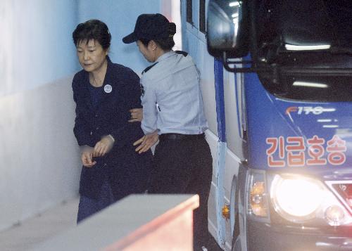 최순실 씨와 공모해 뇌물을 받거나 약속한 혐의로 구속 기소된 박근혜 전 대통령이 30일 오전 4차 공판이 열리는 서울 서초구 서울중앙지방법원 법정으로 향하고 있다. 사진/뉴시스