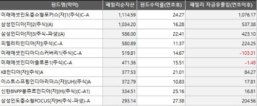 운용사별로는 미래에셋자산운용과 삼성자산운용이 가장 많은 자금을 운용중이다. 미래에셋의 '미래에셋인도중소형포커스[자]1(주식)C-A' 패밀리순자산은 1114억원으로 가장 규모가 크고, 삼성운용의 '삼성인디아[자]2(주식)(A)'가 1034억원으로 뒤를 잇는다.
