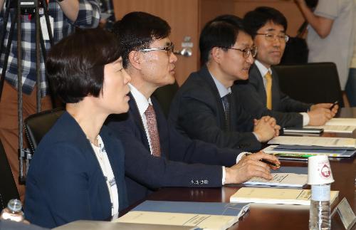 31일 오후 서울 종로구 국정기획자문위원회에서 열린 금융감독원 업무보고에서 금감원 관계자들이 이한주 국정기획위 경제1분과 위원장의 발언을 경청하고 있다. 사진/뉴시스