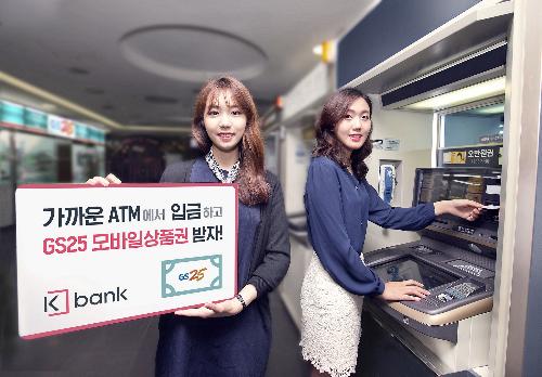 이번 이벤트는 전국 전 16개 은행과 저축은행 등 전 금융기관은 물론 우체국과 지하철역, 터미널 등 공공장소에 설치된 ATM에 해당된다. 케이뱅크 체크카드를 사용해 유료로 케이뱅크 계좌에 입금한 고객에 한하며, 입금 건당 1000원상당의 GS25 모바일 상품권이 제공된다.