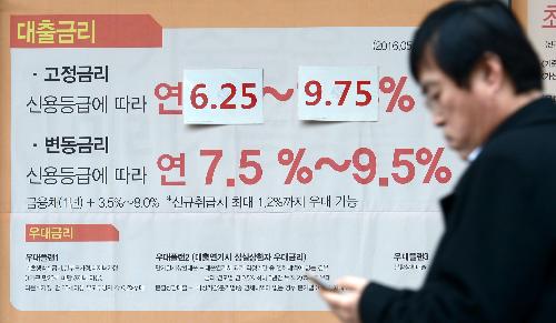 7~10등급 저신용자의 대출은 변동금리형이 80% 이상으로 추정돼 금리 인상 리스크가 그만큼 더 크다. 한국은행은 대출 금리가 1%포인트 오르면 가계의 추가 이자 부담이 9조원 늘어날 것으로 추정하고 있다.