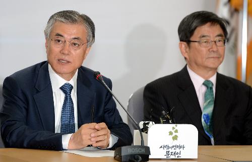 문재인 대통령이 2012년 민주통합당 대선후보 당시 안경환 새정치위원장과 회의에 참석하고 있다. 사진/뉴시스