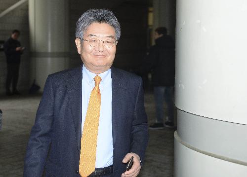 민유성 SDJ 코퍼레이션 고문이 지난해 12월22일 서울 서초동 서울중앙지방법원에서 선고 공판을 받은 뒤 법원을 나서고 있다. 사진/뉴시스