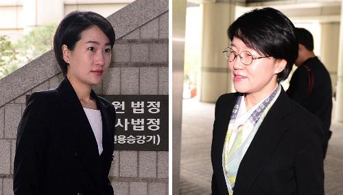 국민의당 김수민(왼쪽),박선숙 의원이 지난 4월17일 오전 서울 서초구 서울중앙지방법원에서 '국민의당 리베이트 사건' 항소심 3차 공판에 출석하고 있다. 사진/뉴시스