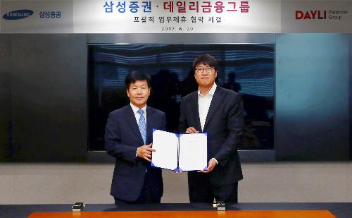 삼성증권은 데일리금융그룹과 양사 역량을 결합한 신규 서비스 창출을 주요 내용으로 하는 포괄적 업무제휴 협약을 체결했다고 20일 밝혔다. 사진/삼성증권