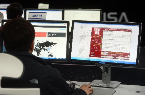 한국인터넷진흥원 인터넷침해대응센터에서 관계자들이 랜섬웨어 피해상황을 점검하고 있다. 사진/뉴시스