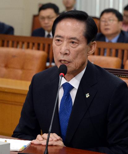 28일 오전 서울 영등포구 여의도 국회에서 열린 국무위원후보자(국방부장관 송영무) 인사청문회에서 송영무 후보자에게 의원 질의에 대답하고 있다. /사진 뉴시스