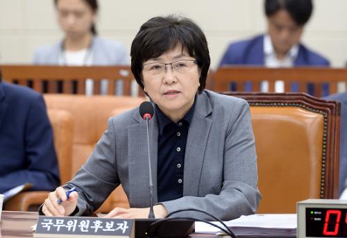 김은경 환경부 장관 후보자가 3일 오후 서울 여의도 국회 환경노동위원회 회의실에서 속개된 인사청문회에서 의원들의 질의에 답하고 있다. 사진/뉴시스