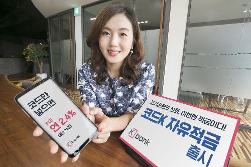 [뉴스토마토 이종용기자] 케이뱅크는 복잡한 조건 없이 코드 하나만 입력하면 누구나 쉽게 우대금리를 받을 수 있는 '코드K 자유적금'을 출시했다고 4일 밝혔다.