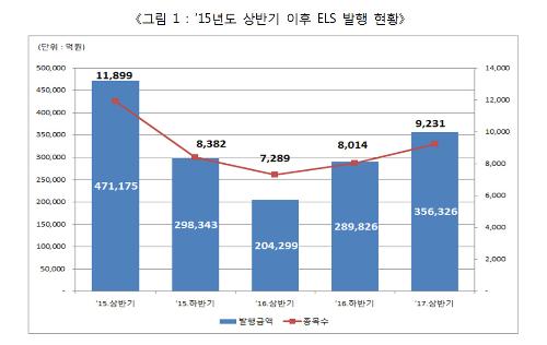 [뉴스토마토 신항섭기자] 올해 상반기 주가연계증권(ELS) 발행금액이 전년 같은 기간 보다 74.4% 증가한 35조원으로 나타났다.