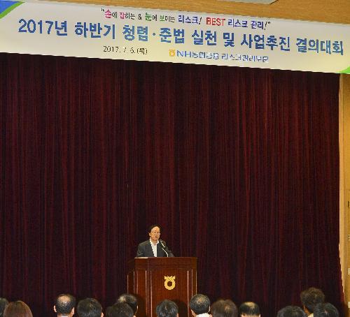 [뉴스토마토 이종용기자] 농협금융지주는 리스크관리부문 임직원들이 지난 6일 서울 서대문구 본점에서 '하반기 청렴·준법 실천 및 사업추진 결의대회'를 가졌다고 7일 밝혔다.