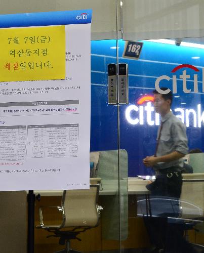 한국씨티은행이 11일 제주, 경남 등 11개 지역 영업점의 폐점 계획을 철회했다. 사진은 지난 7일 문닫은 서울 역삼동 지점사진/뉴시스