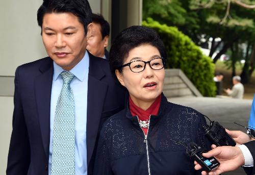 박근혜 전 대통령의 첫 재판이 열린 지난 5월 서울 서초구 서울중앙지법에서 박 전 대통령의 동생 박근령씨가 기자들의 질문에 답변하고 있다. 사진/뉴시스