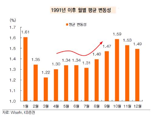 1991년 이후 월별 평균 변동성. 자료/Wisefn