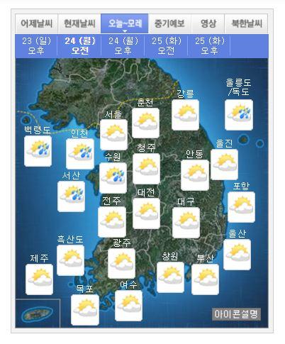 25일 기상청에 따르면 예상 강수량은 5∼40㎜로 이번 비는 밤에 대부분 그치겠다.