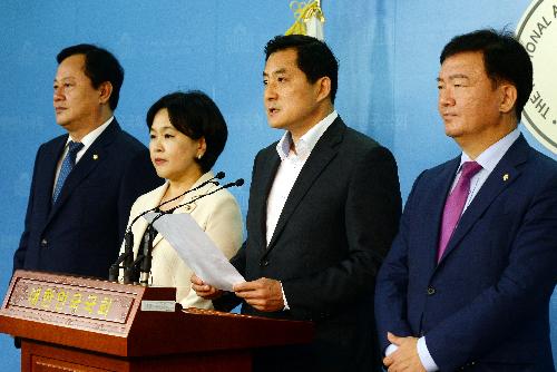 17일 국회 과학기술정보방송통신위원회 소속 자유한국당 의원들이 국회 정론관에서 이효성 방통송신위원장 후보자의 비리 의혹을 제기했다. 사진/뉴시스
