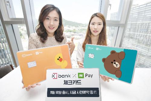 [뉴스토마토 이종용 기자] 인터넷은행 케이뱅크가 오는 18일 ‘라인프렌즈’ 캐릭터를 입은 네이버페이 체크카드를 출시한다고 2일 밝혔다.