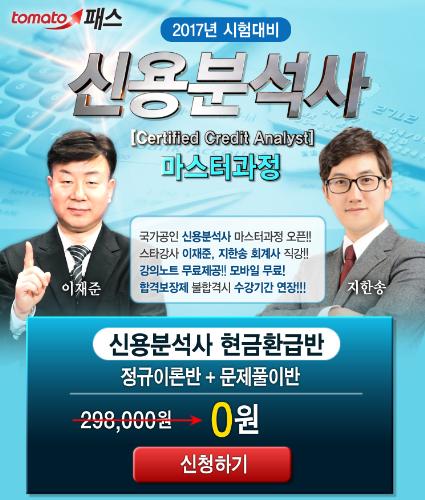 토마토패스 관계자에 따르면 "신용분석사 현금환급반은 스타강사 이재준, 지한송 회계사의 정규이론반과 문제풀이반으로 구성되었으며, 합격시 수강료를 현금으로 환급해주는 이벤트를 실시하고 있다. 불합격할 경우 수강기간을 연장해주는 합격보장제와 강의노트, 모바일수강을 무료로 제공한다."고 밝혔다.
