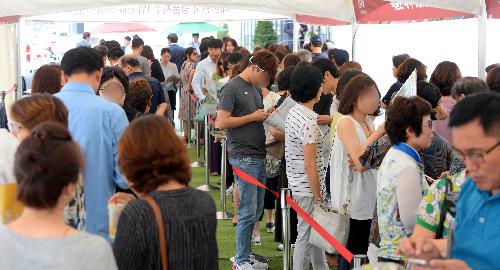 지난 6월30일 오전 세종특별시 3-3생활권 소담동에 분양 예정인 한 오피스텔의 견본주택 앞에 청약예정자들이 길게 줄지어 입장을 기다리고 있다. 사진/뉴시스