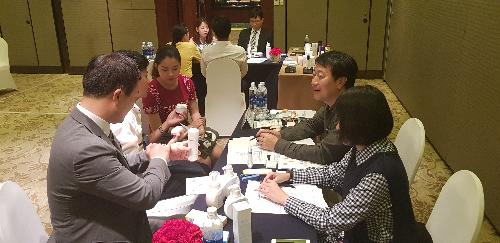베트남 호치민의 롯데 레전드호텔 사이공에서 20~21일 양일간 열린 일대일 비즈니스 상담회에 참석한 중소기업이 현지 바이어와 상담을 하고 있는 모습. 사진/중기중앙회