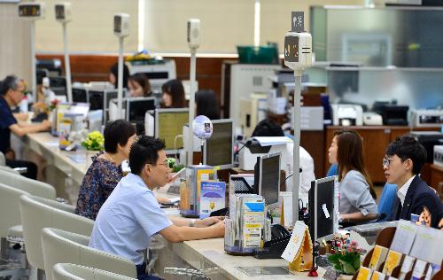 서울 영등포구 한 은행 창구 직원들이 고객들과 상담을 하고 있다. 사진/뉴시스