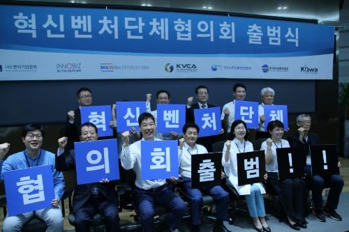 민간주도로 혁신생태계를 고도화한다는 목표로 '혁신벤처단체협의회(혁단협)'가 출범했다. 26일 서울 여의도 산업은행 스타트업IR 센터에서 진행된 출범식에는 7개 참여단체 회장단인 안건준 벤처기업협회장, 성명기 이노비즈협회장, 김정태 한국경영혁신중소기업협회장, 조현정 소프트웨어산업협회장, 김형달 한국벤처캐피탈협회 부회장, 윤소라 한국여성벤처협회장, 장혜원 IT여성기업인협회장 등이 참석했다. 이밖에 이용섭 일자리위원회 부위원장, 고영하 엔젤투자협회장, 스타트업 기업 대표 등 각계 주요인사가 함께 자리했다.