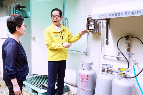 박기동 전 한국가스안전공사 사장이 2015년 9월 충북 진천군 진흥복지원을 방문해 가스시설 안전점검과 함께 가스 안전사용에 대해 설명하고 있다. 박 전 사장은 그러나 이 전인 이사로 재직시 가스안전 상세기준인 KGS를 업체 요구대로 바꿔주고 거액의 뇌물을 받은 것으로 검찰 조사결과 드러났다. 사진/뉴시스