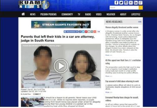 아동을 차량에 방치한 혐의로 체포된 한국인 판사 부부 사건을 보도한 현지 뉴스. 사진/괌뉴스 캡쳐