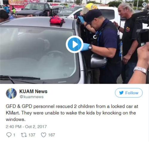 한국인 판사부부가 아동을 차량에 방치한 사건을 보도한 괌뉴스의 트위터. 사진/괌뉴스 트위터 캡쳐