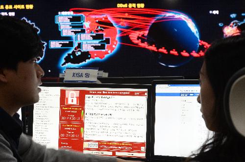서울 서초구 한국인터넷진흥원 내 인터넷침해대응센터 종합상황실에서 관계자들이 사이버 침해 현황을 모니터링하고 있다. 사진/뉴시스