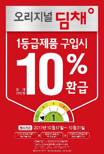 [뉴스토마토 이우찬 기자] 대유위니아는 2018년형 김치냉장고 '딤채' 중 에너지소비효율 1등급 제품 구매 고객을 대상으로 최대 10% 환급 이벤트를 실시한다.