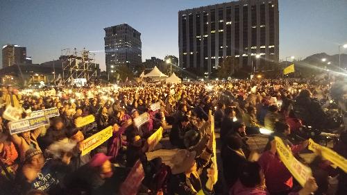 28일 오후 6시 서울 종로구 광화문광장에서 퇴진행동 기록위 주최 촛불 1주년 기념집회가 열리고 있다. 사진/조용훈 기자