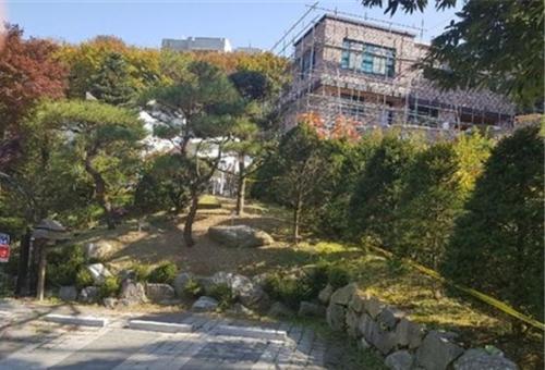 피해자 윤모씨의 집(왼쪽 흰색 건물)과 주차장, 피의자가 공사업무를 담당한 것으로 알려진 신축중인 건물(오른쪽). 사진/뉴시스